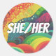 Customizable She/Her, He/Him, Rainbow Pronouns Classic Round Sticker