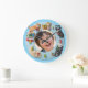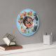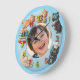 This adorable and vibrant customizable wall clock is the perfect addition to any child's bedroom or playroom. The clock features a light blue circular frame adorned with charming, funny 3D-style cartoon cats representing each hour. From a sleepy cat curled on the moon for 7, to a playful cat with a yarn ball for 12, and a chef cat proudly holding a fish for 4, these cheerful characters make learning to tell time fun! The large, colorful numbers (1-12) are easy to read. Best of all, the center of the clock can be personalized with a photo of your child and their name (like "Andy" in the example). This unique timepiece serves as both functional decor and a cherished keepsake, encouraging punctuality with a smile.