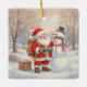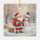 Capture the magic of Christmas with this absolutely adorable square ceramic ornament! This unique design features Santa Claus dressed in his classic red suit, wearing a backpack and holding a vintage camera to take a selfie with his smiling snowman friend. Set in a charming, snowy winter landscape, this whimsical scene is a perfect mashup of holiday tradition and modern fun.
