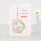 On a baby girl’s first Easter, this adorable card will surely be perfect! Personalize with her name above this bunny sitting on a floral swing.