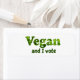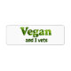 Show your vegan pride and vote your lifestyle and your values. Proclaim your vegan activism in promoting an animal-free diet and other healthy choices to politicians and other voters this election season. Make sure your issues are addressed by elected officials by letting them know where you stand politically as well as personally. You may customize this product by easily changing the tag line “and I vote” to make it say whatever you wish. Simply use the personalize feature. If you want to go further, such as changing font or background color, adding more lines of text or your organization logo, etc., you have complete freedom by customizing the product.