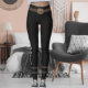 Customized Pet Lover Brown Belt Brass Buckle Black Leggings