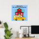 Welcome your students to school with this colorful and customizable Welcome to School classroom poster! Features a red schoolhouse, a school bus with several stick figure kids, and an area you can customize with your name and class you teach!