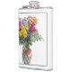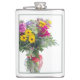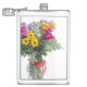 An exquisite bouquet of cut flwers in a glass vase with a white backround.
