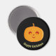 Cute pumpkin face on black background round magnet. Text can be personalized.