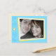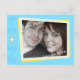 This cute save the date postcard features space to customise with your own photo image. Shown here in cream and blue with hints of yellow, this save the date invite has a retro scrapbook look.
