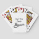 A fun set of playing cards with a card game term: Cut The Deck, and a picture of a pair of kitchen shears, or scissors, on the back. Black and white design.