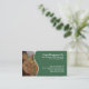 A business card template for forestry and timber companies with a photo of deciduous woodland in autumn colours with a close-up of the cut ends of two large logs in the foreground. On the front are the company name, address and contact details on a dark green panel separated from the photograph by a white wavy line. On the reverse is space for an employee's name and position, and any other information. This is on the white coloured card stock, with a customisable background colour on the reverse.