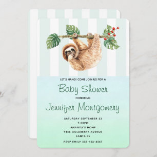 Cute Sloth Hanging Upside Down Watercolor Shower Invitation