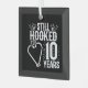 This fun 10th wedding anniversary design is perfect for fishing couples that have been married for 10 years and are still hooked on each other & love to go fishing! Great for a 10th wedding anniversary party to celebrate 10 years of marriage! Features "Still Hooked After 10 Years" wedding anniversary quote w/ heart shaped fish hooks with fishing graphic in a distressed vintage style design.