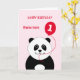 Add a name: This cute panda card has a soft pink background and a bright red first birthday balloon. It is ready for you to personalize with the birthday child's name. There is a red birthday balloon inside as well. The message inside can be personalized too, and currently reads "Have a wonderful first birthday, full of love and fun".