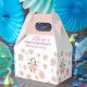 A pretty cute girly ballerina Penguin birthday party favour box for a little's girl's 1st, 2nd , 3rd - or any age birthday party with pattern of cartoon baby ballerina Penguin wearing a pale pink tutu twirling a pink ribbon, and matching pink handles.