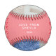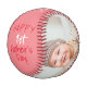 Cute 1st Father`s Day Pink Script 2 Photo Collage Baseball. Cute design for the new dad. Trendy script Happy Father`s Day, message with name and year. Add 2 favourite photos and make a sweet gift for a new dad for Father`s Day.