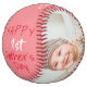 Cute 1st Father`s Day Pink Script 2 Photo Collage Softball. Cute design for the new dad. Trendy script Happy Father`s Day, message with name and year. Add 2 favourite photos and make a sweet gift for a new dad for Father`s Day.