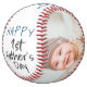 Cute 1st Father`s Day Script White 2 Photo Collage Softball. Cute design for the new dad. Trendy script Happy Father`s Day, message with name and year is on white background. Add your 2 favourite photos into the template and make a sweet and personal gift for a dad or new dad for Father`s Day.