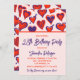 Cute 28th birthday invitation Glam Red Pink Heart
