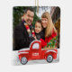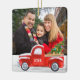 Cute 2-Sided Family Photo Red Truck Christmas Ceramic Ornament