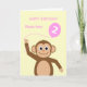 Cute 2nd birthday monkey add name pink card