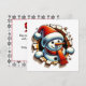 Adorable nostalgic personalised Christmas card. Cute snowman coming through a hole in the wall with Santa hat and red scarf. Back has a place where you can personalise your holiday greeting and add your names.