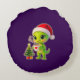 **Cute 3D Green Alien in Santa Hat with Hot Chocol Round Cushion