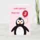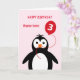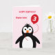 Personalise this third birthday card by adding the birthday girl's name on the front. The card features a cute penguin with a red birthday balloon on a pink background. There is a further birthday balloon inside