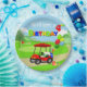 Celebrate a special little boy's fourth birthday with this charming golf-themed paper plate! Featuring a red golf cart parked beside a putting green this sweet design is loaded with playful details a festive birthday cake, presents and a bunch of bright helium balloons, including a big number 4 balloon. Perfect for a golf-loving family or a unique fourth birthday theme, this napkin sets the tone for a fun-filled day on and off the green.