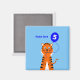 This fun magnet for a five year old can be easily personalized by typing in the box to add their name. The smiling tiger has a blue 5th birthday balloon to match the name, on a blue background.