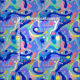 Digital art of a cute repeating pattern. Style of colourful pastel and blue neon pattern, reminiscent of a bowling alley carpet or arcade carpet. Nostalgic pattern for family, for friends, for him, for her, for them, for mum, for dad, for grandma, for grandpa, for cousin, for aunt.