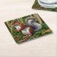 Cute Abstract Squirrel With Pinecones Square Paper Coaster