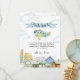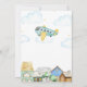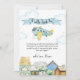 Cute whimsical airplane pilor baby shower theme, design feature watercolor vintage town and blue and yellow aviator over the the sky with "Adventure Awaits" text, perfect for baby boy and girl baby shower. you can customize your own text and color.