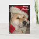 Cute akita dog red santa hat pointsettia christmas holiday card