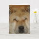 The original Japanese akita image on this original greeting card looks so cute with her big funny sleepy and loving expression. This cute dog picture was taken when she was looking down the stairs and her face slipped giving her the cute big face on that's familiar to everyone who is owned by an akita, especially an elderly akita such as this special ten year old lady. This cute akita dog photo card shows the sweet and very relaxed attitude of the akita breed. This is a customizable greeting card, you can add your own personal message inside the card.
