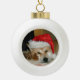 Cute akita in red santa hat with christmas cones ceramic ball christmas ornament