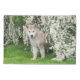 A young Alaskan Malamute puppy with a plush double coat standing in a grass meadow with a white flowering bush in spring. A cute dog photo taken by Katho Menden, this pillow case is a gift idea for dog and pet lovers.