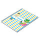 Cute custom Alice in Wonderland notebook for a child who loves books. Little girl Alice in her blue dress and the Mad Hatter sit on a pretty blue border on a whimsical personalized journal for children.