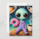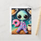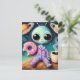 Cute Alien With Coffee and Doughnut in Space Postcard