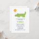 Adorable illustration of a fun alligator holding an orange balloon. Perfect for boy or girl kids birthday parties.