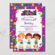 Start your tropical hawaiian luau birthday party with our cute luau birthday invitation featuring the cutest little hula girls wearing hula skirts & flip flops set on a colourful & trendy purple tropical flower background. Cute for a girls birthday party or any summer or pool party celebration. Visit our shop to view other stylish & modern luau summer party invitations. © Babystar designs