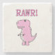 Cute And Angry Pink Cartoon T-Rex Dinosaur Stone Coaster