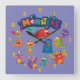 Cute and Colourful Fun Monsters Playing Scene Square Wall Clock