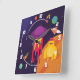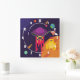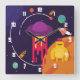 Cute and Colourful Space Ship in Outer Space Scene Square Wall Clock