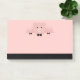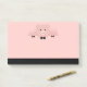 Sticky notes celebrating the Chinese New Year. A big pink pig face wearing a formal bow tie. Lifted up by his black cloven hooves and peering over a table. Cute and whimsical drawing. Set on a pink background with faded hearts. Ready to celebrate the year of the pig 2019.