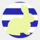 Stylish And Cute Yellow Bunny / Rabbit Silhouette, Blue and White Stripes Background Wedding Favour / Other Purpose Sticker to add to your accessories collection. A cool gift / present idea for all who love custom design personalised items, positive vibes, fun, joy etc. Keywords: birthday party, pet, animal, Easter, pink, coral, turquoise, green etc.