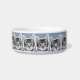 This is a heavy, durable bowl decorated with Tibbies of many colors, the perfect size for hungry/thirsty Tibs. The design is interesting and printing clear.