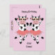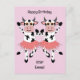 Fun an dcute birthday postcard. Hand drawn cows in ballet skirts on pink. Funny motif for children, dancers, and all who do not take life too seriously!