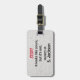 This STOP luggage tag alerts other travelers that while the bag might look the same - it doesn't belong to them. Red and black lettering on a grayish, textile print. Personalise with your name.