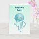 Cute and Happy Blue-Green Jellyfish Birthday Card