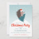 Cute and modern christmas party invitation design with the illustration of a hedgehog carrying a christmas tree.
