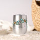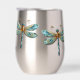 Cute and quirky dragonflies in gold, aqua and turquoise on a customisable thermal wine tumbler. Dragonflies have a 3-D effect and appear to jump off the wine tumbler. Add your name or add "mum" or "dad" and leverage as cute gifts for your special holidays and celebrations. Great for nature lovers too!