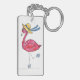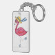 Cute and Whimsical Pink Flamingo on Skates Key Ring